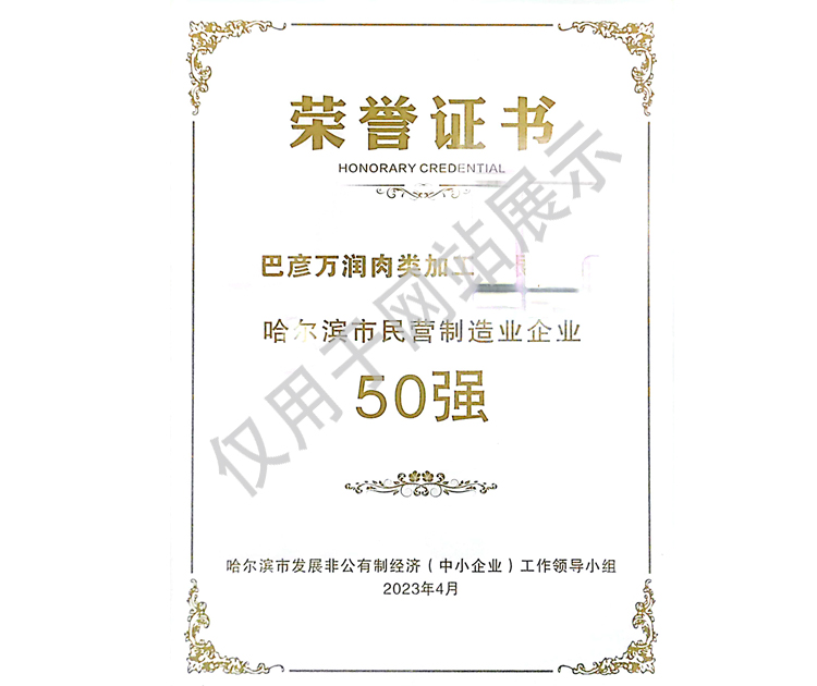 2016年公司通過了中國質量認證中心的質量管理體系(ISO9001)和食品安全管理體系(ISO22000)認證;2017年已取得國家進出口企業認證;是中國肉類協會會員單位,黑龍江省肉類協會副會長單位;2017年,公司產品經中國綠色食品發展中心審核,被認定為綠色食品A級產品;被省畜牧獸醫局確定為全國生豬屠宰標準化創建示范企業(全國僅6家)。2018年12月,被評定為市級農業產業化重點龍頭企業。2019年1月,被評定為省級農業產業化龍頭企業。
