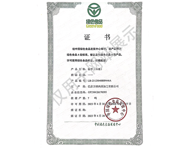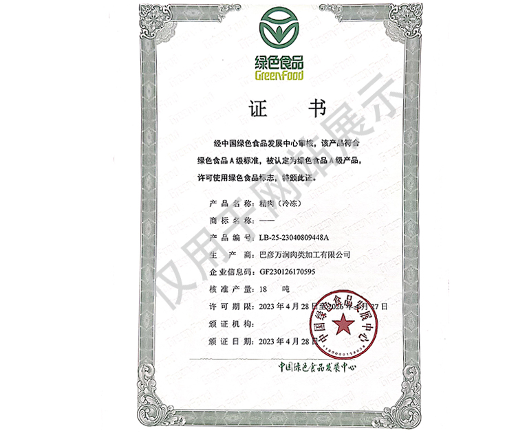 2016年公司通過了中國質量認證中心的質量管理體系(ISO9001)和食品安全管理體系(ISO22000)認證;2017年已取得國家進出口企業(yè)認證;是中國肉類協會會員單位,黑龍江省肉類協會副會長單位;2017年,公司產品經中國綠色食品發(fā)展中心審核,被認定為綠色食品A級產品;被省畜牧獸醫(yī)局確定為全國生豬屠宰標準化創(chuàng)建示范企業(yè)(全國僅6家)。2018年12月,被評定為市級農業(yè)產業(yè)化重點龍頭企業(yè)。2019年1月,被評定為省級農業(yè)產業(yè)化龍頭企業(yè)。