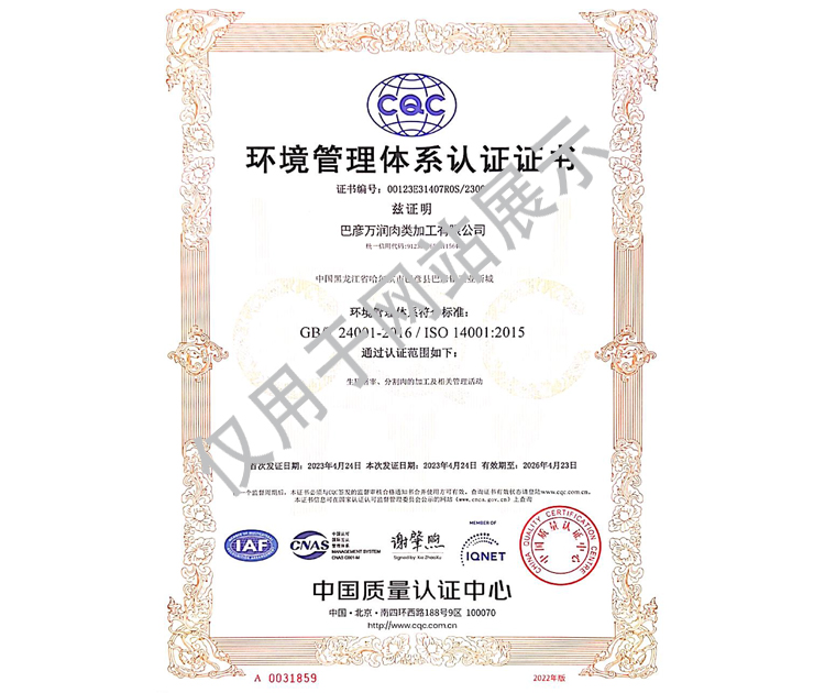 2016年公司通過了中國質(zhì)量認(rèn)證中心的質(zhì)量管理體系(ISO9001)和食品安全管理體系(ISO22000)認(rèn)證;2017年已取得國家進(jìn)出口企業(yè)認(rèn)證;是中國肉類協(xié)會會員單位,黑龍江省肉類協(xié)會副會長單位;2017年,公司產(chǎn)品經(jīng)中國綠色食品發(fā)展中心審核,被認(rèn)定為綠色食品A級產(chǎn)品;被省畜牧獸醫(yī)局確定為全國生豬屠宰標(biāo)準(zhǔn)化創(chuàng)建示范企業(yè)(全國僅6家)。2018年12月,被評定為市級農(nóng)業(yè)產(chǎn)業(yè)化重點龍頭企業(yè)。2019年1月,被評定為省級農(nóng)業(yè)產(chǎn)業(yè)化龍頭企業(yè)。