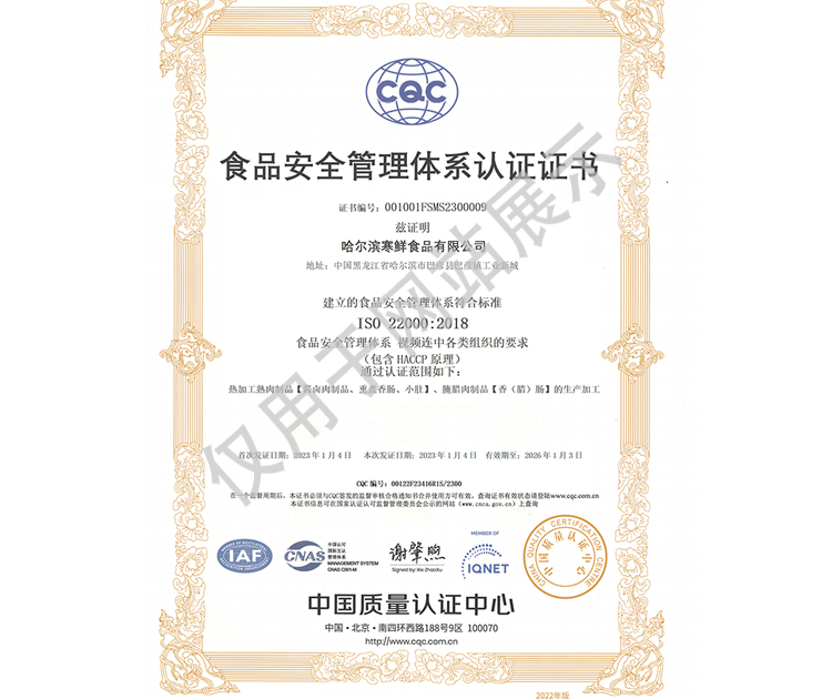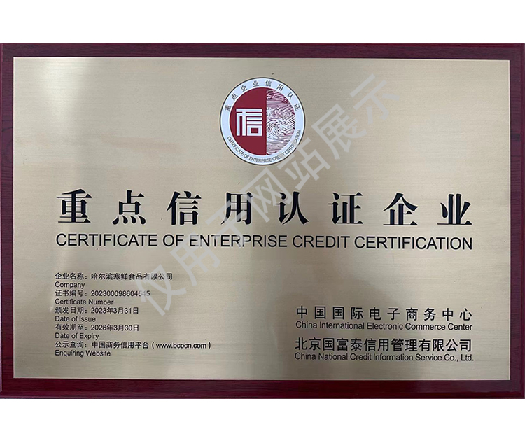 2016年公司通過了中國質量認證中心的質量管理體系(ISO9001)和食品安全管理體系(ISO22000)認證;2017年已取得國家進出口企業認證;是中國肉類協會會員單位,黑龍江省肉類協會副會長單位;2017年,公司產品經中國綠色食品發展中心審核,被認定為綠色食品A級產品;被省畜牧獸醫局確定為全國生豬屠宰標準化創建示范企業(全國僅6家)。2018年12月,被評定為市級農業產業化重點龍頭企業。2019年1月,被評定為省級農業產業化龍頭企業。
